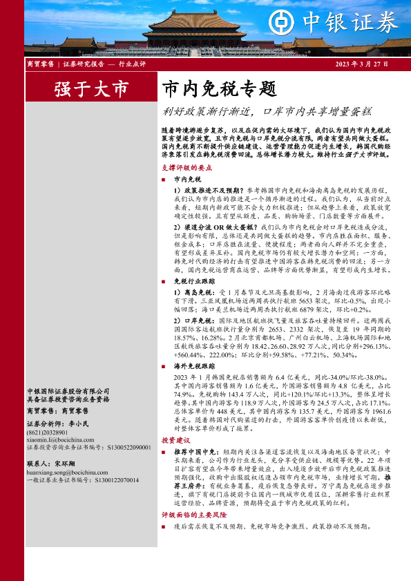 【中银证券】【20230327】市内免税专题:利好政策渐行渐近,口岸市内共享增量蛋糕-16页