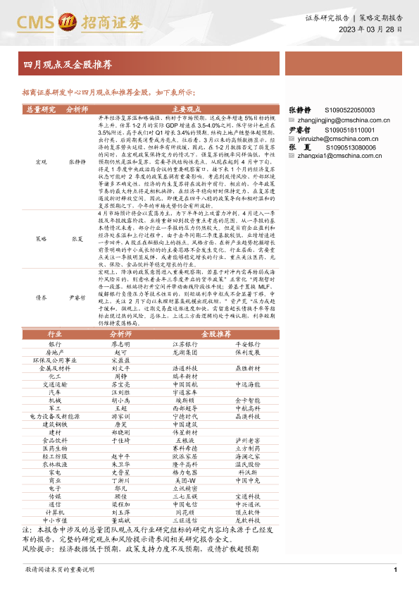 【海通证券】【20230328】四月观点及金股推荐-27页