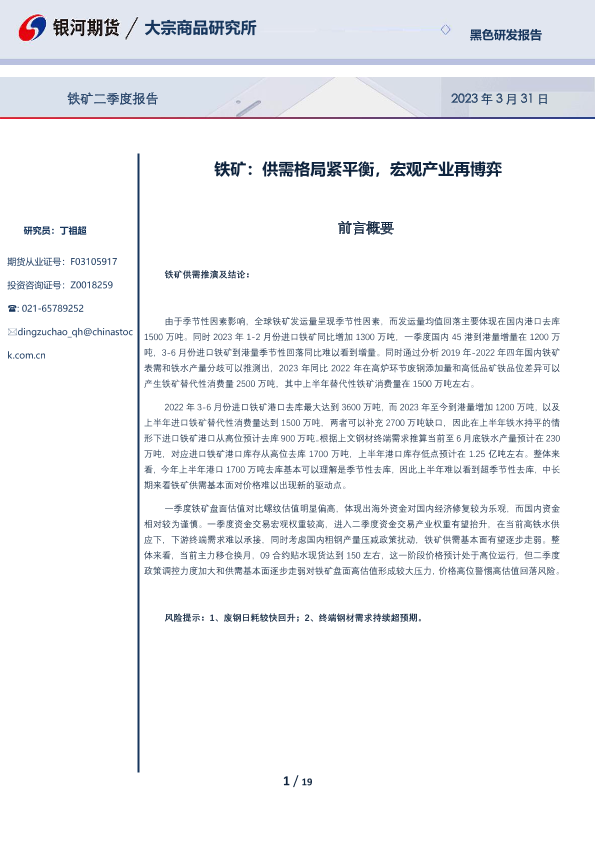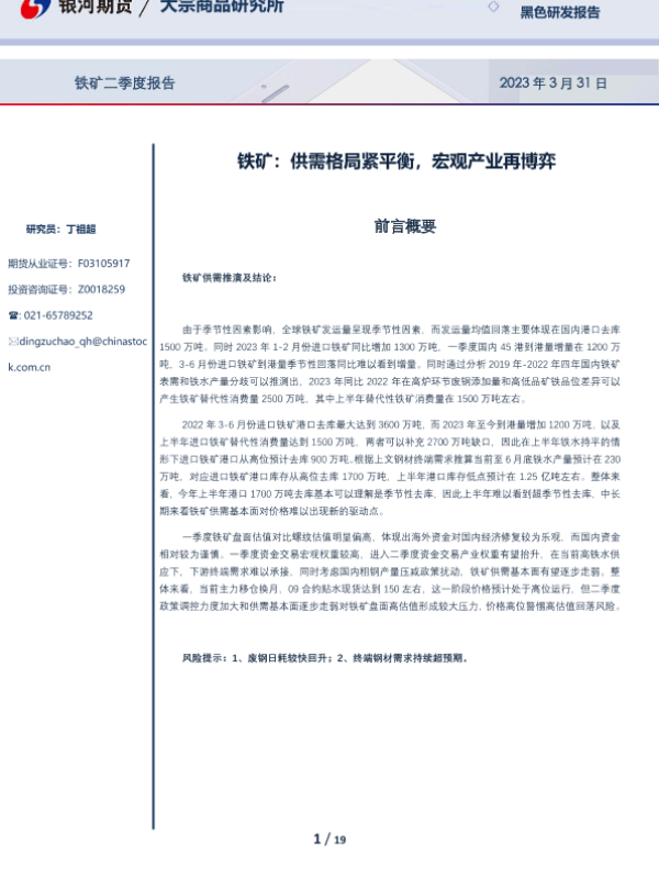 【银河期货】【20230331】铁矿二季度报告:供需格局紧平衡,宏观产业再博弈-19页