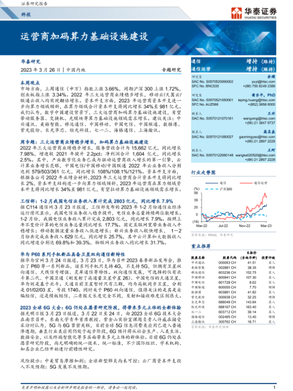 【华泰证券】【20230326】通信行业: 运营商加码算力基础设施建设-22页