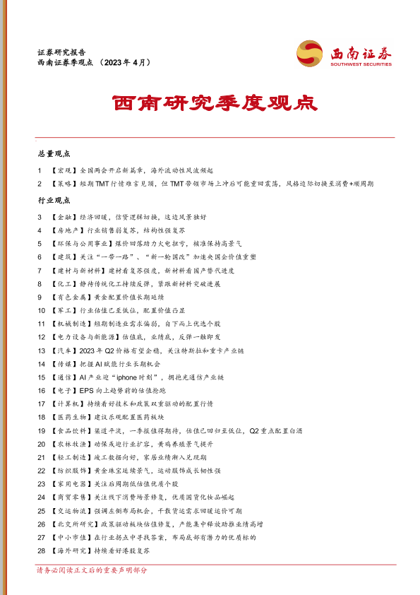 【西南证券】【20230328】西南研究季度观点-15页
