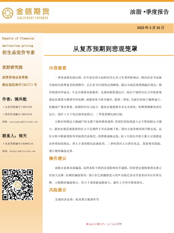 【金信期货】【20230326】油脂·季度报告:从复苏预期到悲观笼罩-20页