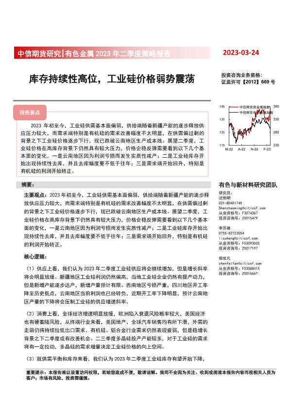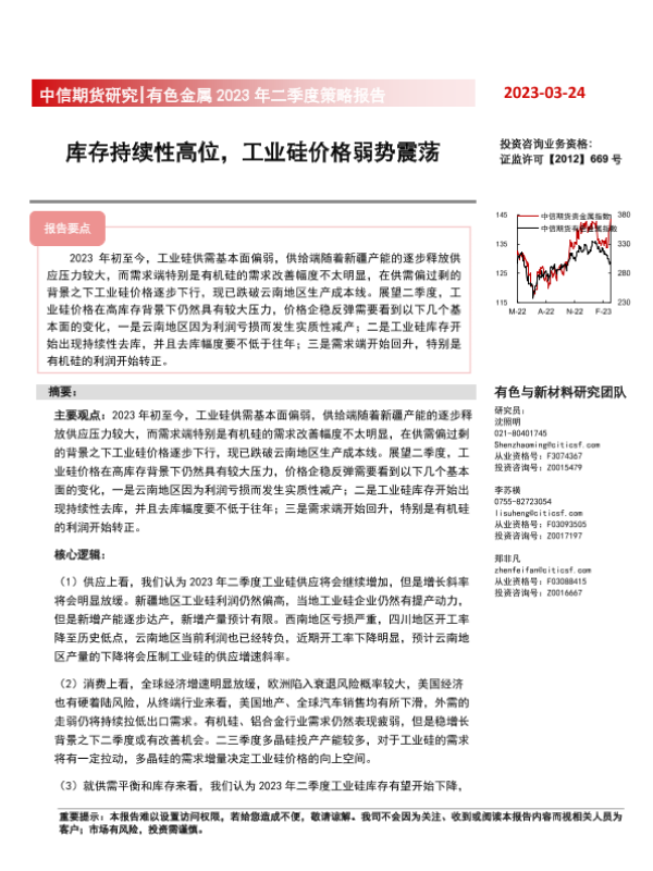 【中信期货】【20230324】有色金属2023年二季度策略报告:库存持续性高位,工业硅价格弱势震荡-20页