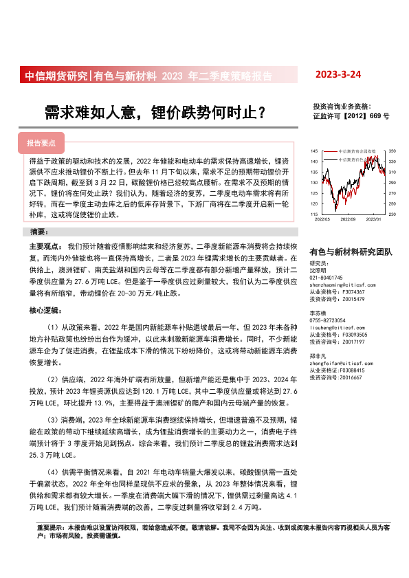 【中信期货】【20230324】有色与新材料2023年二季度策略报告:需求难如人意,锂价跌势何时止?-22页