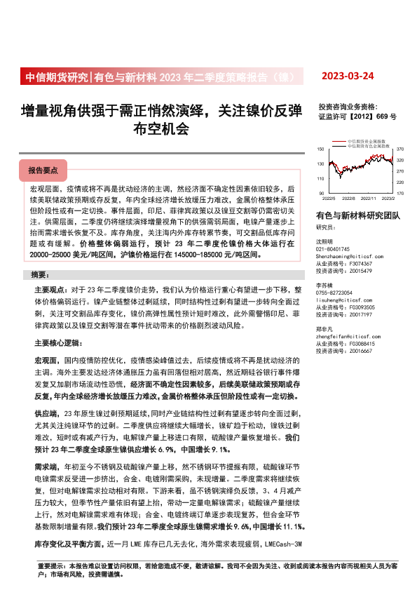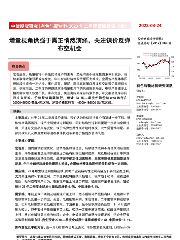 【中信期货】【20230324】有色与新材料2023年二季度策略报告(镍):增量视角供强于需正悄然演绎,关注镍价反弹布空机会-31页