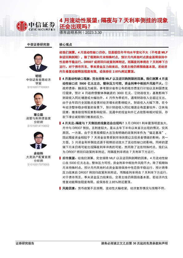 【中信证券】【20230330】4月流动性展望:隔夜与7天利率倒挂的现象还会出现吗?-37页