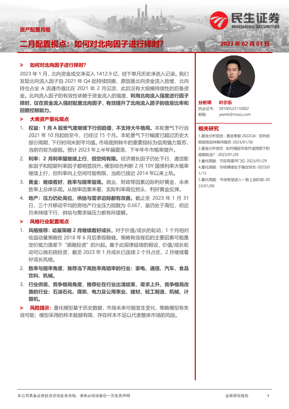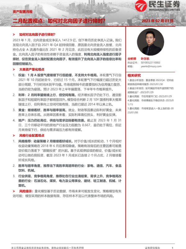 【民生证券】【20230203】资产配置月报:二月配置视点,如何对北向因子进行择时?-25页