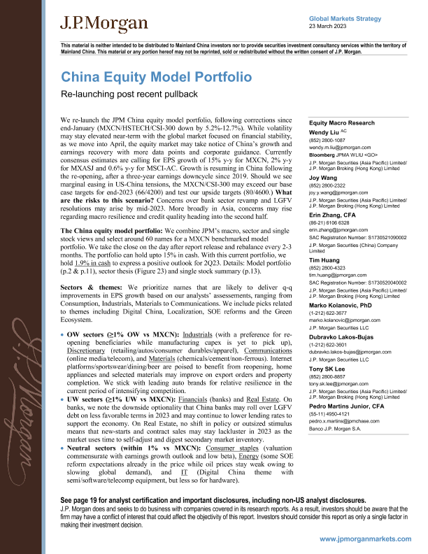 【J.P. Morgan】【20230323】China Equity Model Portfolio Re-launching post recent pullback-23页