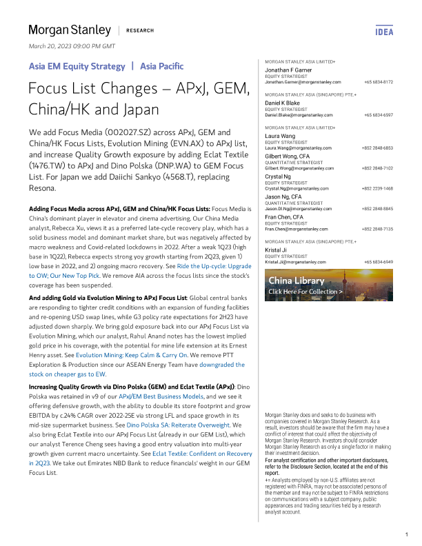 【Morgan Stanley】【20230320】Asia EM Equity Strategy Focus List Changes – APxJ, GEM, China/HK and Japan-14页