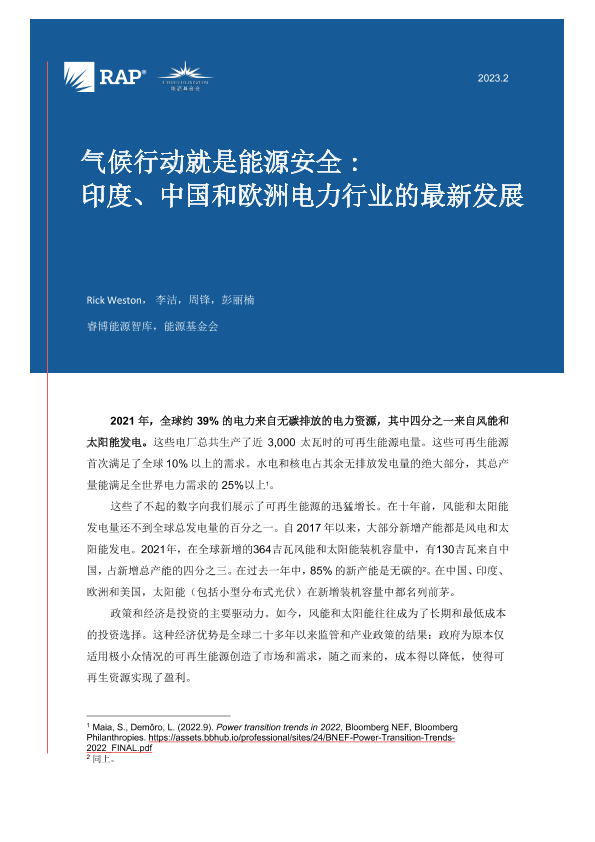 【REGULATORY ASSISTANCE PROJECT(RAP)】【202302】气候行动就是能源安全:印度、中国和欧洲电力行业的最新发展-12页