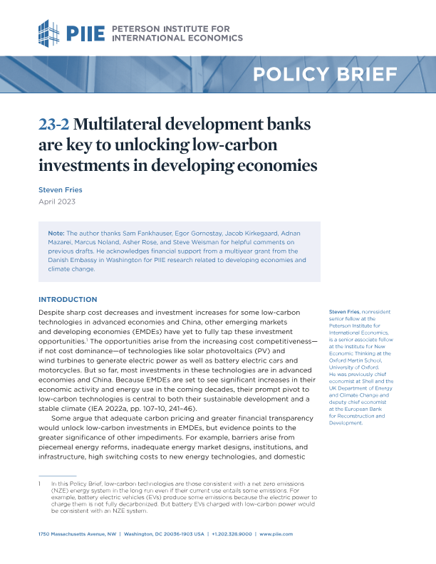 【彼得森经济研究所】【202304】多边开发银行是释放发展中经济体低碳投资的关键-25页
