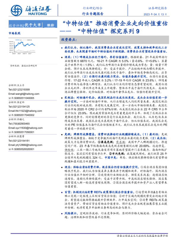 【海通证券】【20230413】“中特估值”推动消费企业走向价值重估-32页