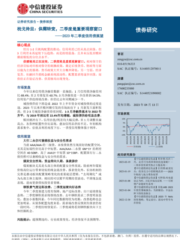 【中信建投证券】【20230413】2023年二季度信用债展望:枕戈待旦,供需转变,二季度是重要观察窗口-17页