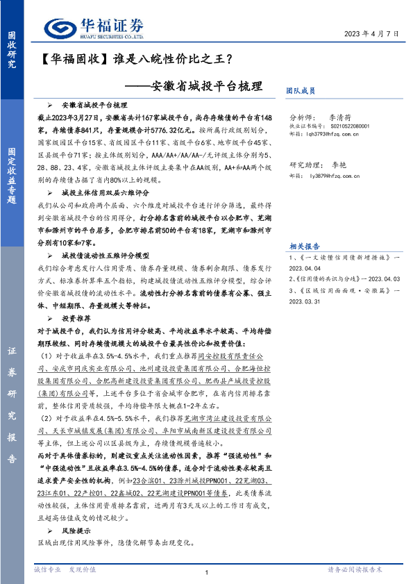 【华福证券】【20230407】安徽省城投平台梳理:谁是八皖性价比之王?-66页