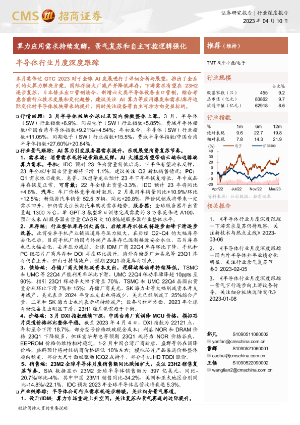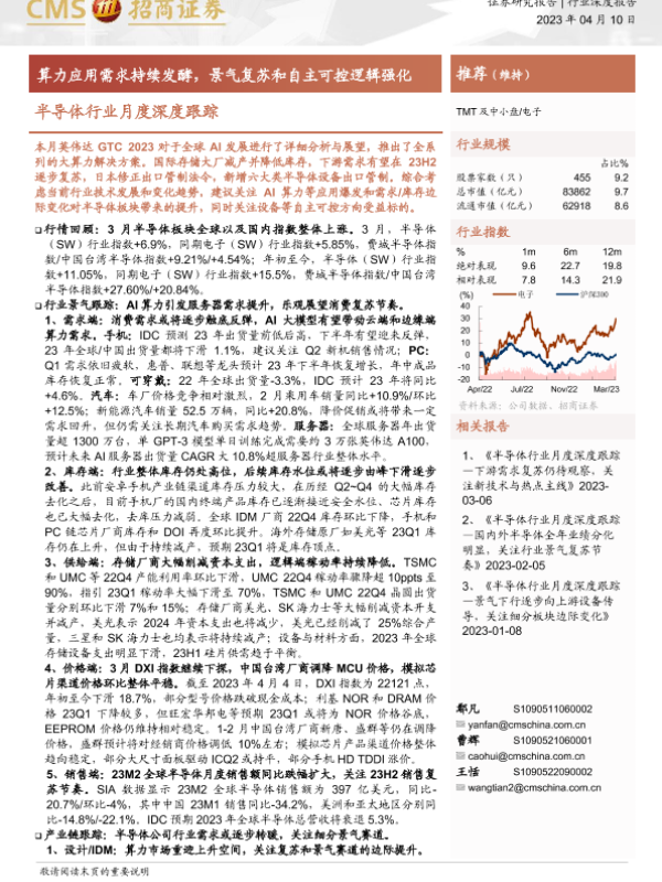 【海通证券】【20230410】半导体行业月度深度跟踪:算力应用需求持续发酵,景气复苏和自主可控逻辑强化-73页