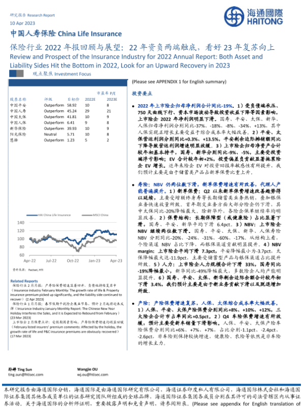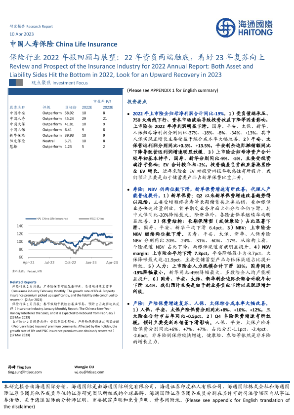 【海通国际】【20230412】保险行业2022年报回顾与展望:22年资负两端触底,看好23年复苏向上-41页