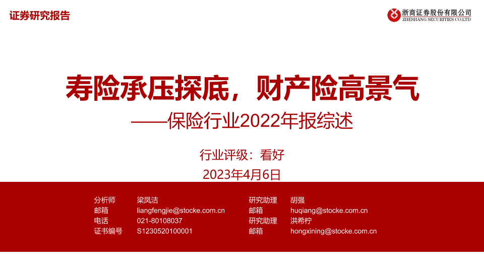 【浙商证券】【20230406】保险行业2022年报综述:寿险承压探底,财产险高景气-24页