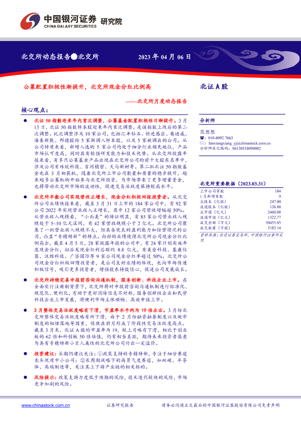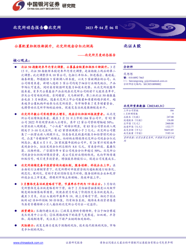 【银河证券】【20230406】北交所月度动态报告:公募配置积极性渐提升,北交所现金分红比例高-22页