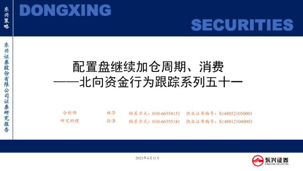 【东兴证券】【20230411】北向资金行为跟踪系列五十一:配置盘继续加仓周期、消费-26页
