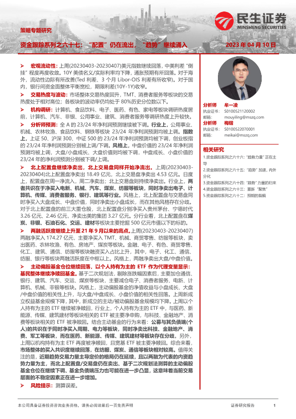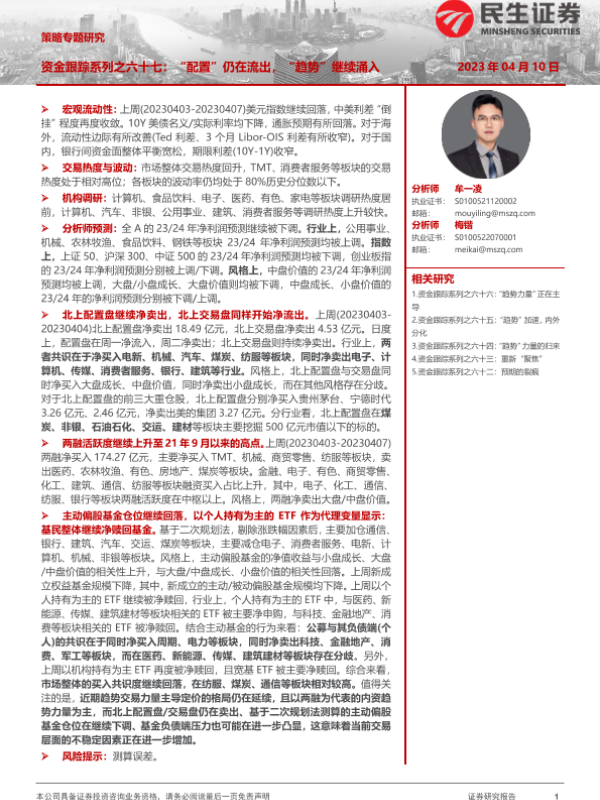 【民生证券】【20230410】策略专题研究:资金跟踪系列之六十七:“配置”仍在流出,“趋势”继续涌入-36页