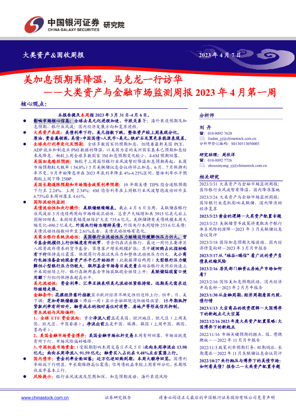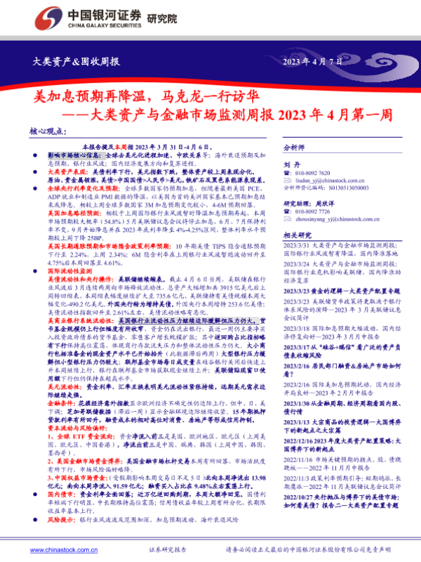 【银河证券】【20230407】大类资产与金融市场监测周报2023年4月第一周:美加息预期再降温,马克龙一行访华-23页