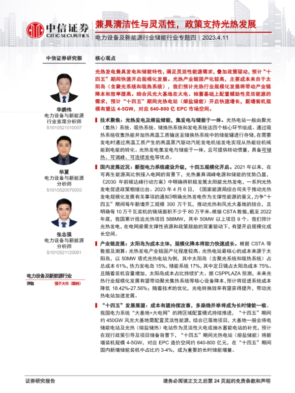 【中信证券】【20230411】电力设备及新能源行业储能行业专题四:兼具清洁性与灵活性,政策支持光热发展-25页