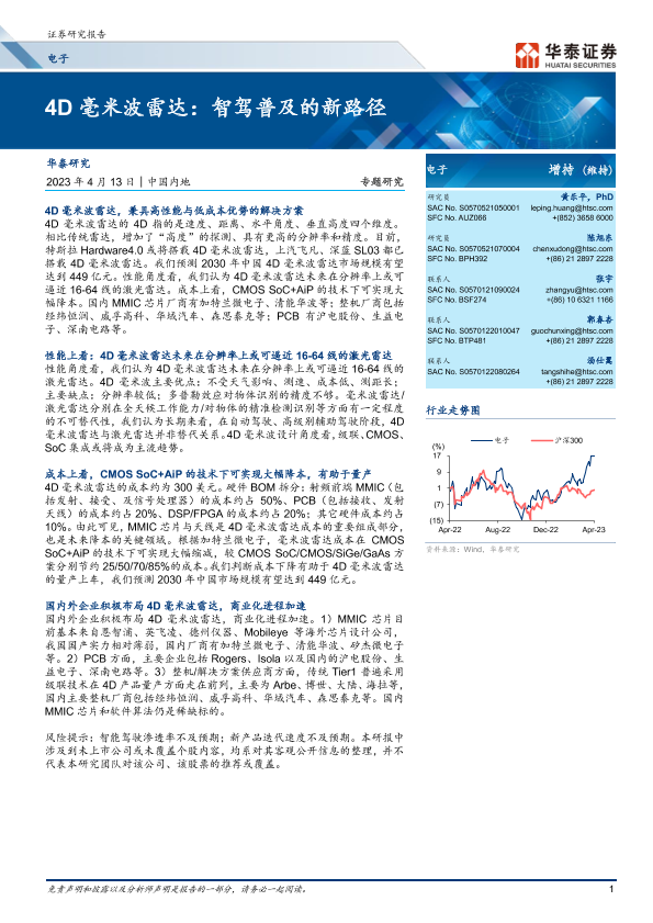 【华泰证券】【20230413】电子行业:4D毫米波雷达,智驾普及的新路径-29页