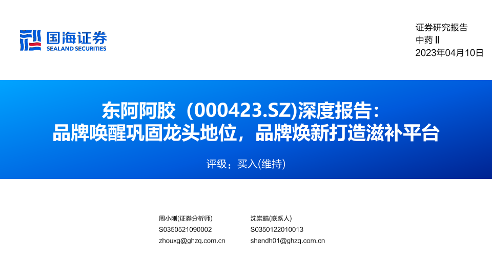 【国海证券】【20230410】东阿阿胶深度报告(000423):品牌唤醒巩固龙头地位,品牌焕新打造滋补平台-41页