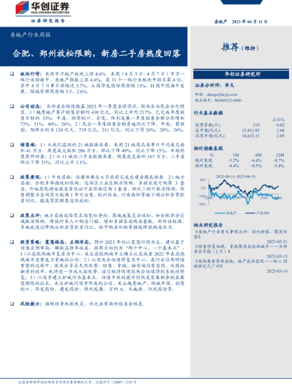 【华创证券】【20230411】房地产行业周报:合肥、郑州放松限购,新房二手房热度回落-16页