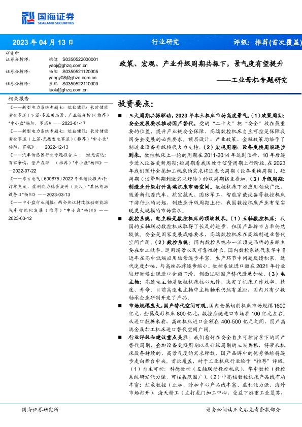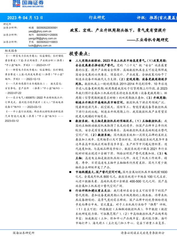 【国海证券】【20230413】工业母机行业专题研究:政策、宏观、产业升级周期共振下,景气度有望提升-36页