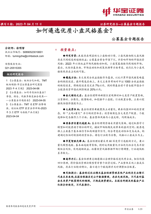 【华宝证券】【20230411】公募基金专题报告:如何遴选优质小盘风格基金?-21页