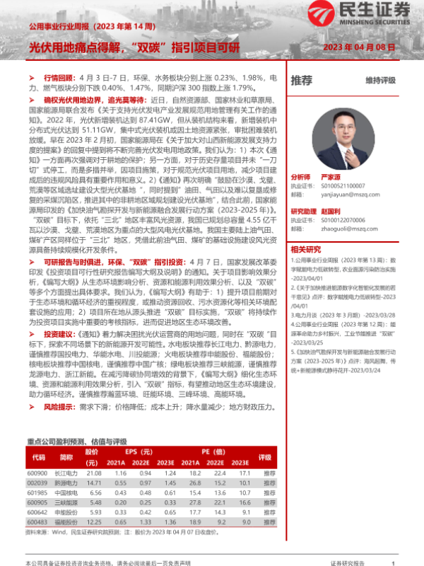 【民生证券】【20230408】公用事业行业周报(2023年第14周):光伏用地痛点得解,“双碳”指引项目可研-23页