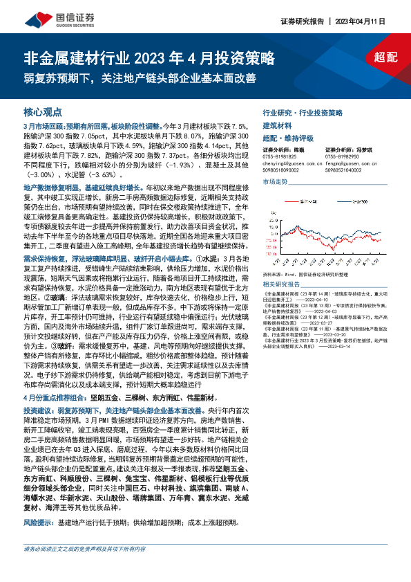 【国信证券】【20230411】非金属建材行业2023年4月投资策略:弱复苏预期下,关注地产链头部企业基本面改善-32页