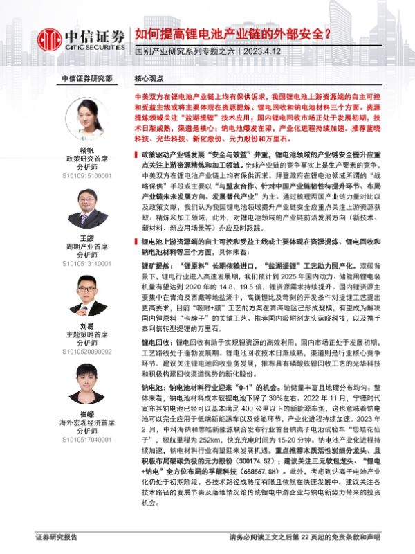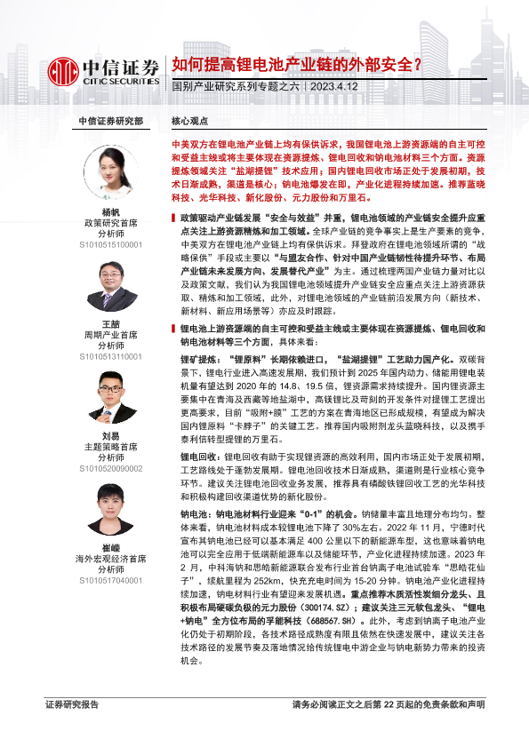 【中信证券】【20230412】国别产业研究系列专题之六:如何提高锂电池产业链的外部安全?-24页