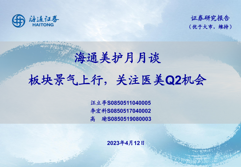 【海通证券】【20230412】海通美护月月谈:板块景气上行,关注医美Q2机会-25页