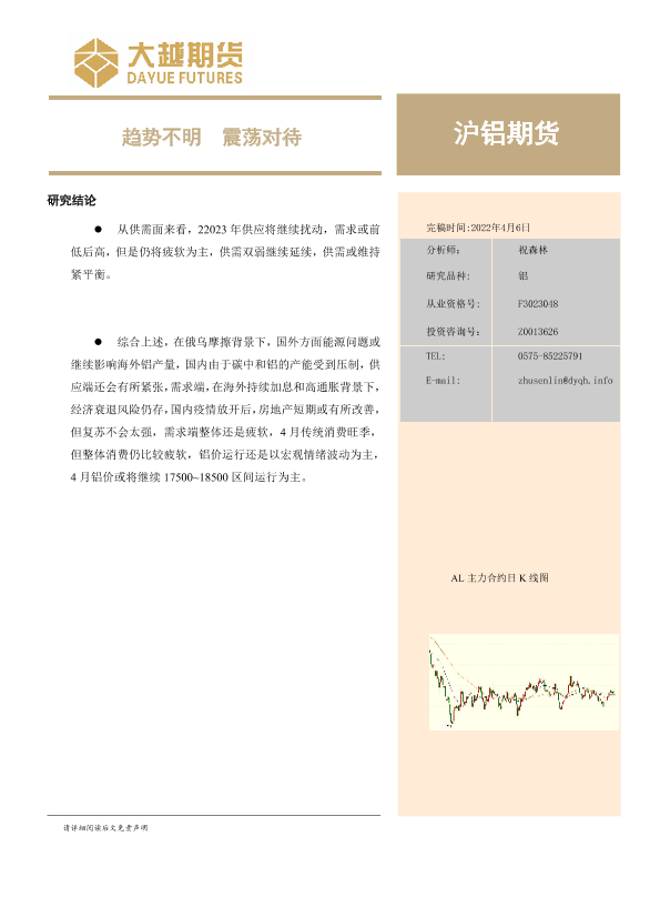 【大越期货】【20230406】沪铝期货月度报告:趋势不明,震荡对待-20页