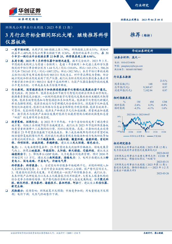 【华创证券】【20230409】环保及公用事业行业周报(2023年第13期):3月行业开标金额同环比大增,继续推荐科学仪器板块-16页