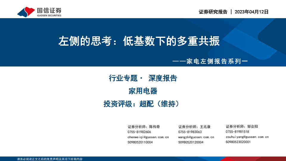 【国信证券】【20230412】家电行业左侧报告系列一:左侧的思考,低基数下的多重共振-30页