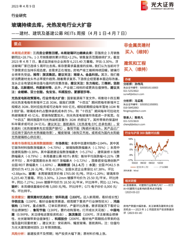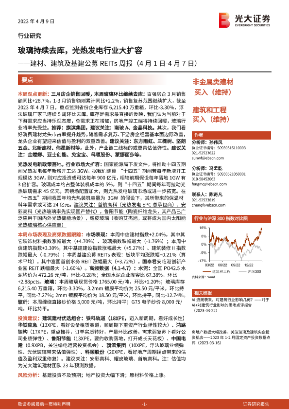 【光大证券】【20230409】建材、建筑及基建公募REITs周报:玻璃持续去库,光热发电行业大扩容-19页
