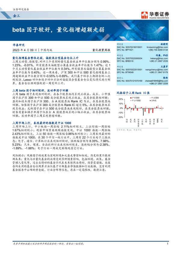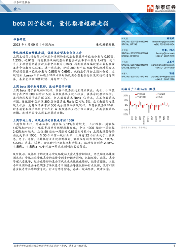 【华泰证券】【20230409】金工量化投资周报:beta因子较好,量化指增超额走弱-20页