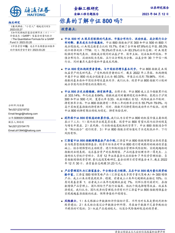 【海通证券】【20230412】金融工程专题报告:你真的了解中证800吗?-23页