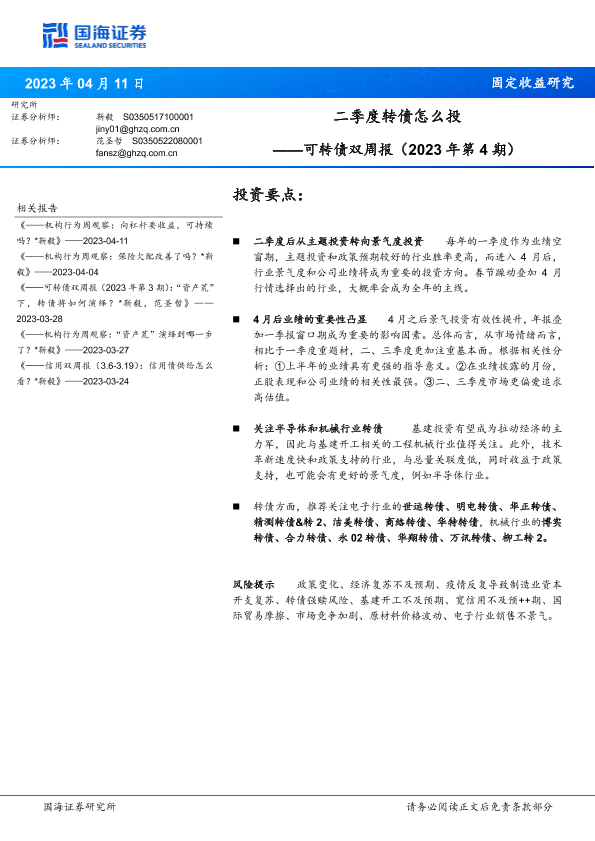 【国海证券】【20230411】可转债双周报(2023年第4期):二季度转债怎么投-16页