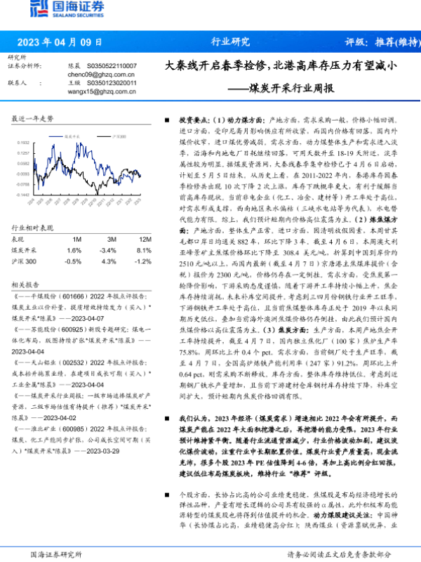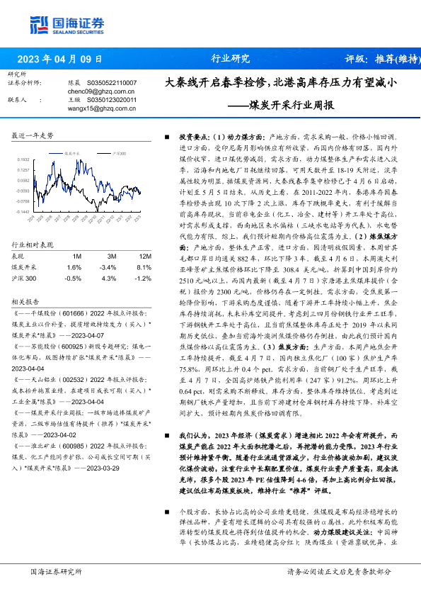 【国海证券】【20230409】煤炭开采行业周报:大秦线开启春季检修,北港高库存压力有望减小-21页