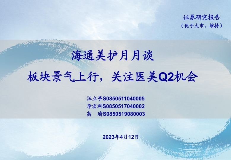 【海通证券】【20230412】美护行业月月谈:板块景气上行,关注医美Q2机会-25页