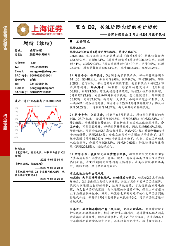 【上海证券】【20230407】美容护理行业3月月报&4月投资策略:蓄力Q2,关注边际向好的美护标的-39页