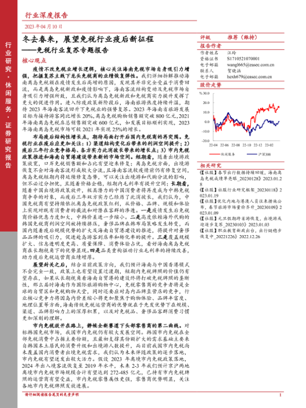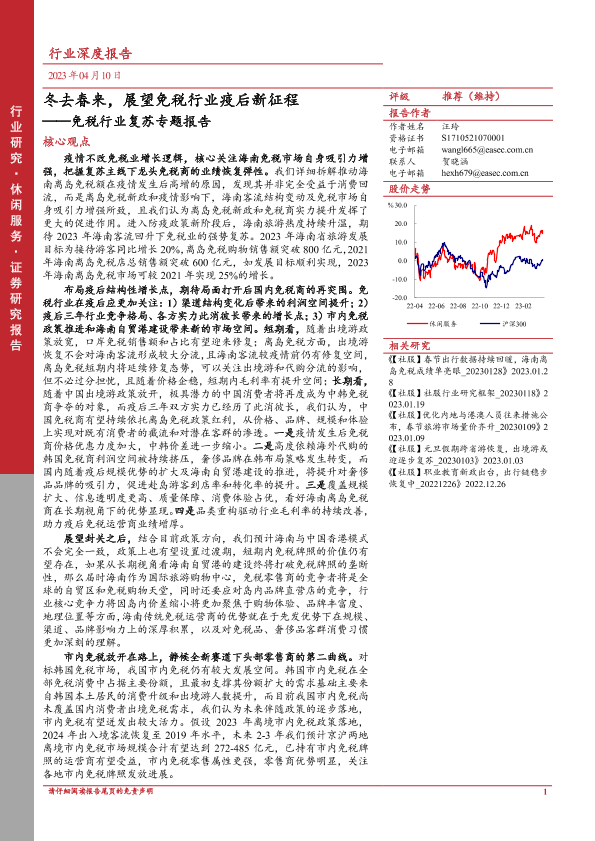 【东亚前海证券】【20230410】免税行业复苏专题报告:冬去春来,展望免税行业疫后新征程-46页