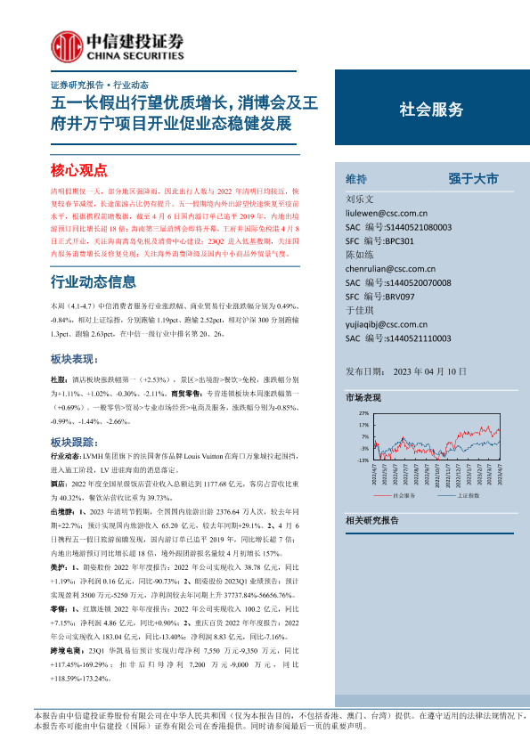 【中信建投证券】【20230410】社会服务行业:五一长假出行望优质增长,消博会及王府井万宁项目开业促业态稳健发展-28页