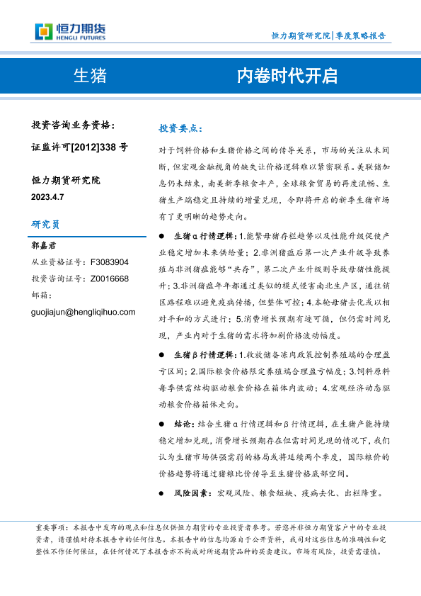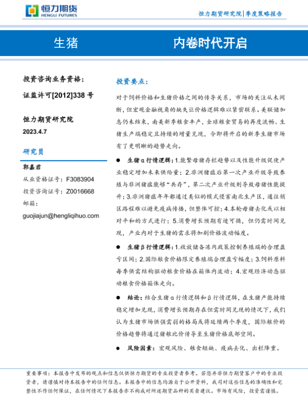 【恒力期货】【20230407】生猪:内卷时代开启-21页