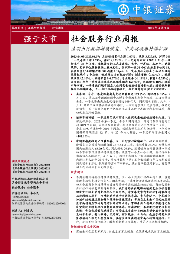 【中银证券】【20230409】社会服务行业周报:清明出行数据持续恢复,中高端酒店持续扩张-17页