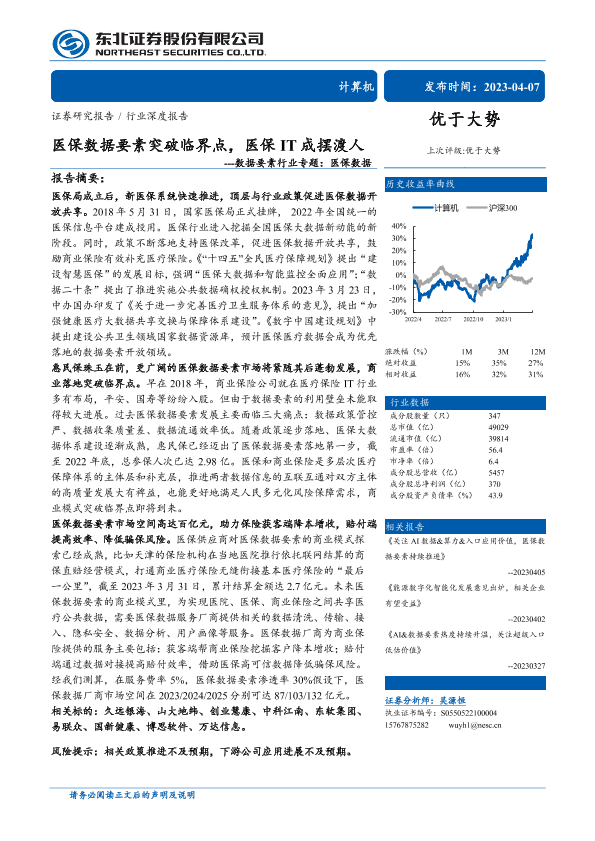 【东北证券】【20230407】数据要素行业专题:医保数据,医保数据要素突破临界点,医保IT成摆渡人-38页